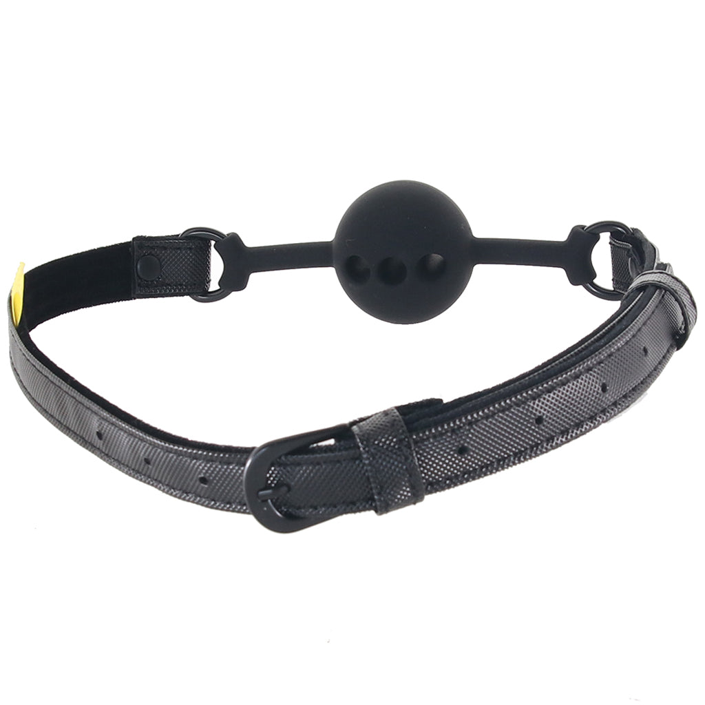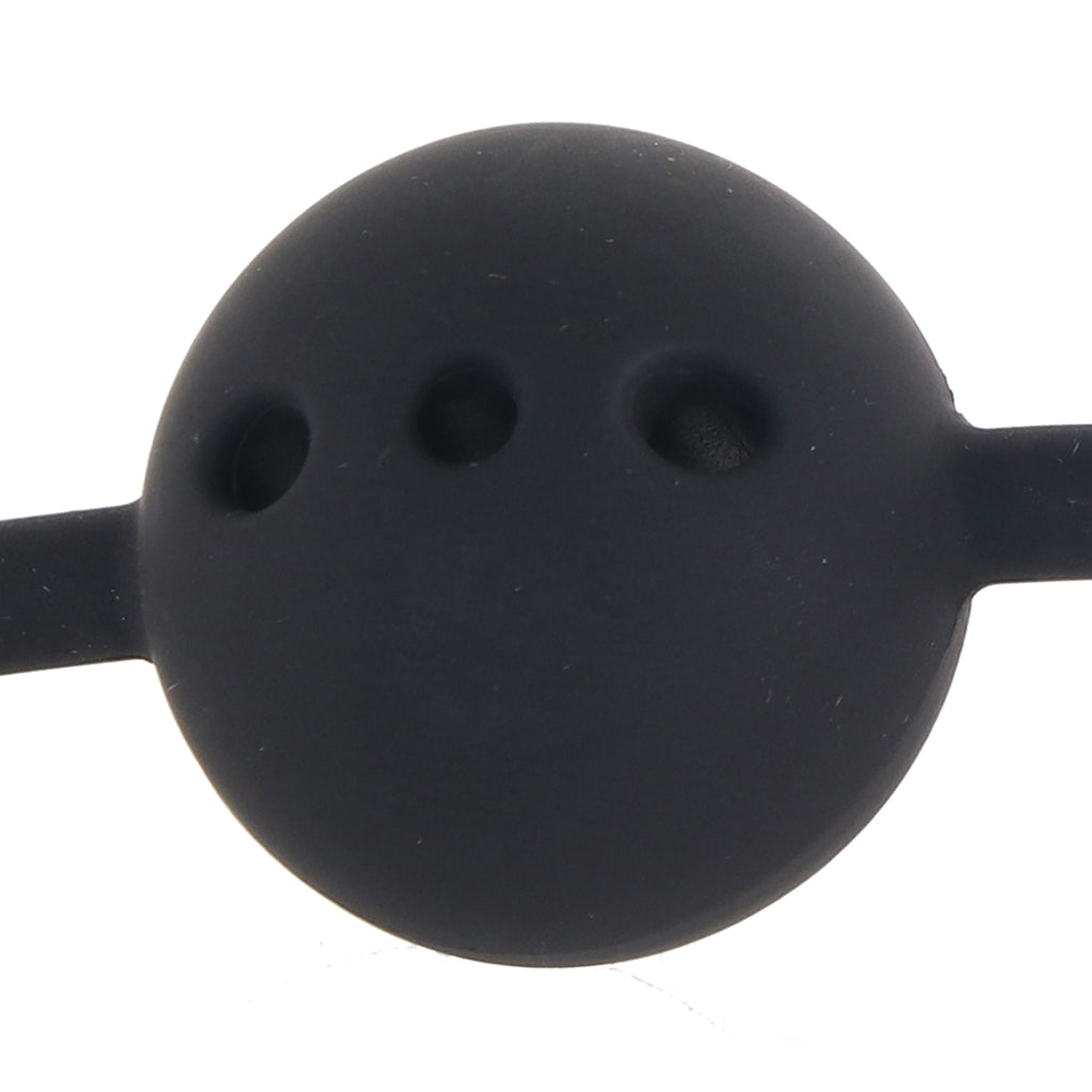 Keeping back-talk at a minimum and biting, spitting and other mouthy shenanigans under control, the Gag's silky silicone sphere fits fully in your or your partner's mouth. Buckle up the fuzzy-lined black vegan leather band around their head after positioning the perforated ball just right.