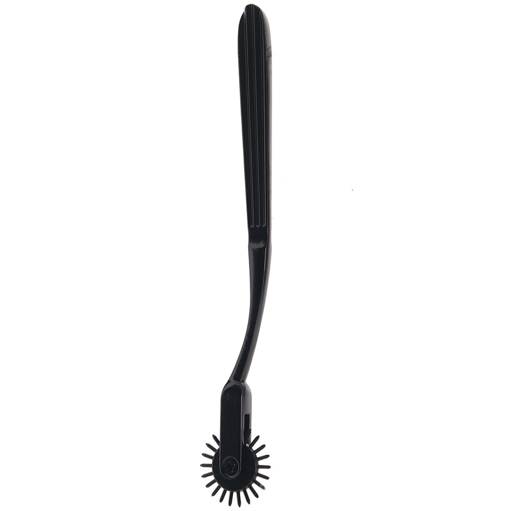 A bit less intense in terms of sharpness than some similar tools (ie: great for sensation play beginners!), the Wheel features a single rolling circle of spikes. Roll the wheel lightly over skin to feel (or have them feel) the effect of those tingly teeth - press harder to really make a point!