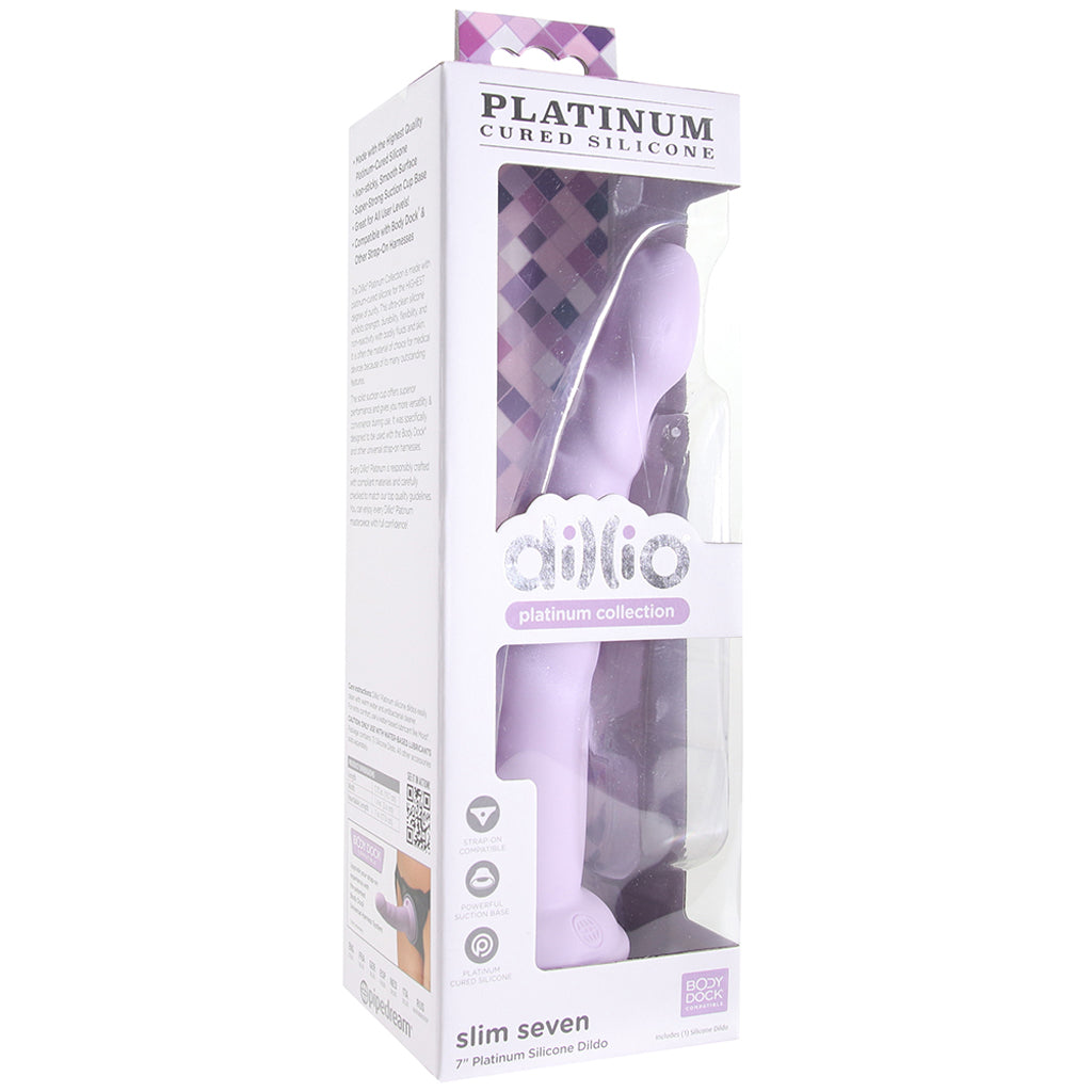 The platinum silicone Slim Seven Dildo (and all the toys from the Dillio Platinum line) is body-safe, easy to clean with soapy water or your favorite care fluid/foam, and plays nice with any water-based lube you love.