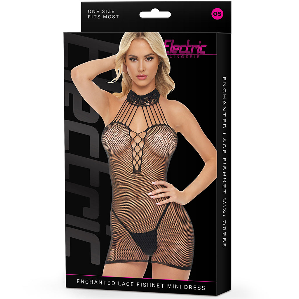If you have someone to tease tonight or you just love feeling sexy under (and out of) your clothes, Electric Lingerie has you (barely) covered with the Enchanted Lace Fishnet Mini Dress.