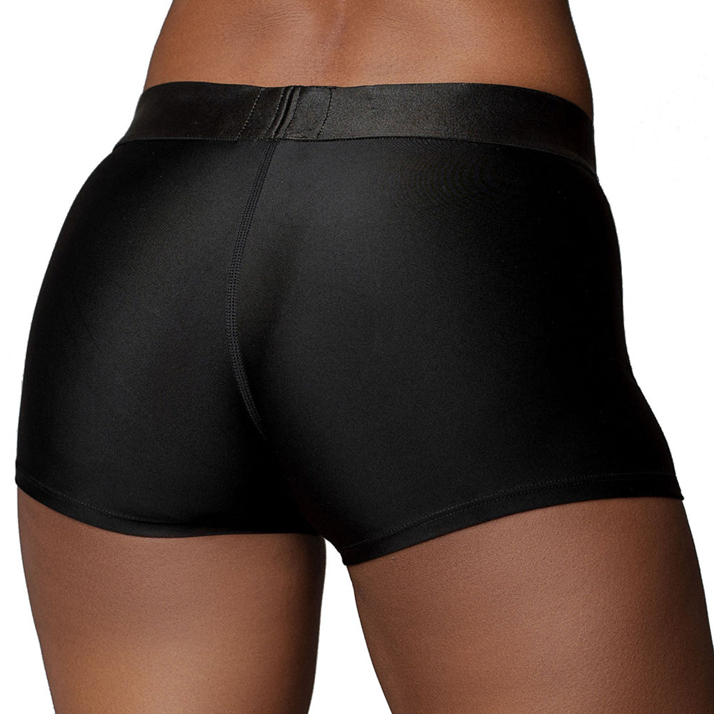Pull the comfortably snug Boxers over your hips, secure a favorite penetrator with the patent-pending sewn-in silicone cincher, and you're good to go! No straps, no muss, no fuss. Plus, the flattering fit features a sleek profile that's great for wearing under your clothes.
