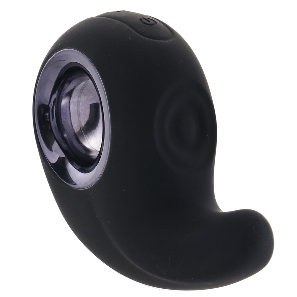 Sleek and lightweight, the circular Ring My Bell vibe is extra easy to hold in your hand or have your partner hold in theirs. At one side, a tiny 1"/2.5cm vibrating penetrator waits to target vaginas or butts and beyond, while a pulsing tapper below thrums and throbs against outer sweet spots - think clits and perineums, particularly.