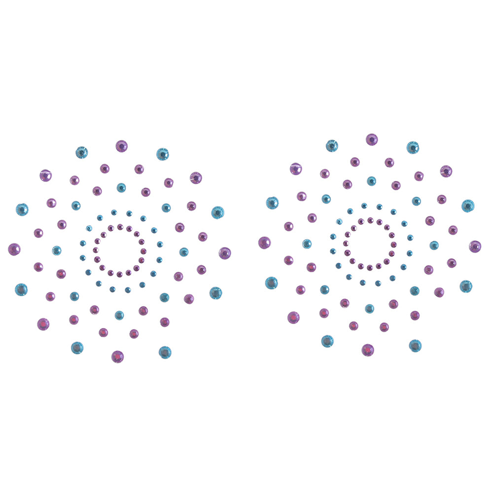 Let's face it, sometimes sparkles are necessary! Whether you're looking to glam up a favorite low-necked top or going bare, the gloriously gorgeous iridescent Charm II Set has you covered - barely! These two delicate, jewel-encrusted designs can be placed anywhere you'd like to draw some extra attention.