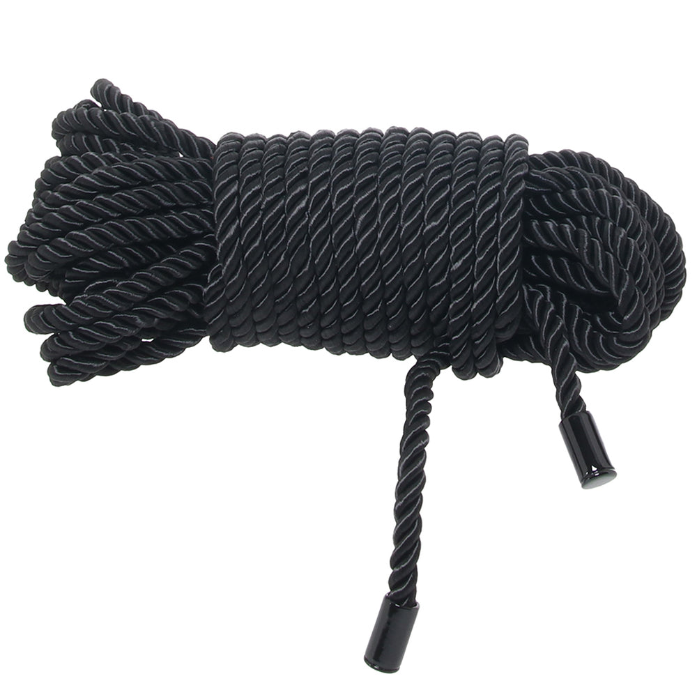 Ultra strong and able to be stretched, twisted, tied, wrapped, and bound around just about any body part, bedpost, bondage frame, or otherwise, the extra long length is tipped by glossy zinc alloy caps, making ends easy to find and secure.