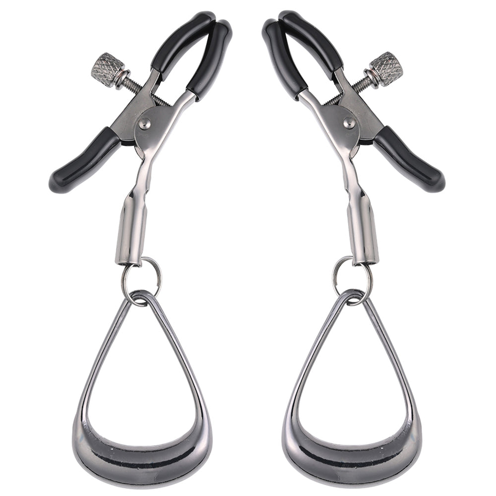 These weighty, silicone-tipped alligator clamps are fully adjustable, pressure-wise—twist the screws to loosen or tighten. Meanwhile, big hematite loops sway and swing from the base of each for lots of namesake tugging as you play. You can attach other weights or bondage gear, too.